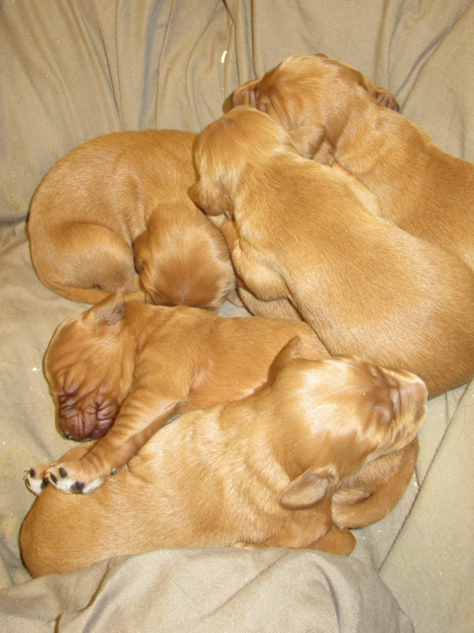 In the wee hours of the New Year, six adorable Golden Irishes joined our household. Five handsome boys and one sweet girl are available for adoption and will be ready for their new homes as of February 25th.