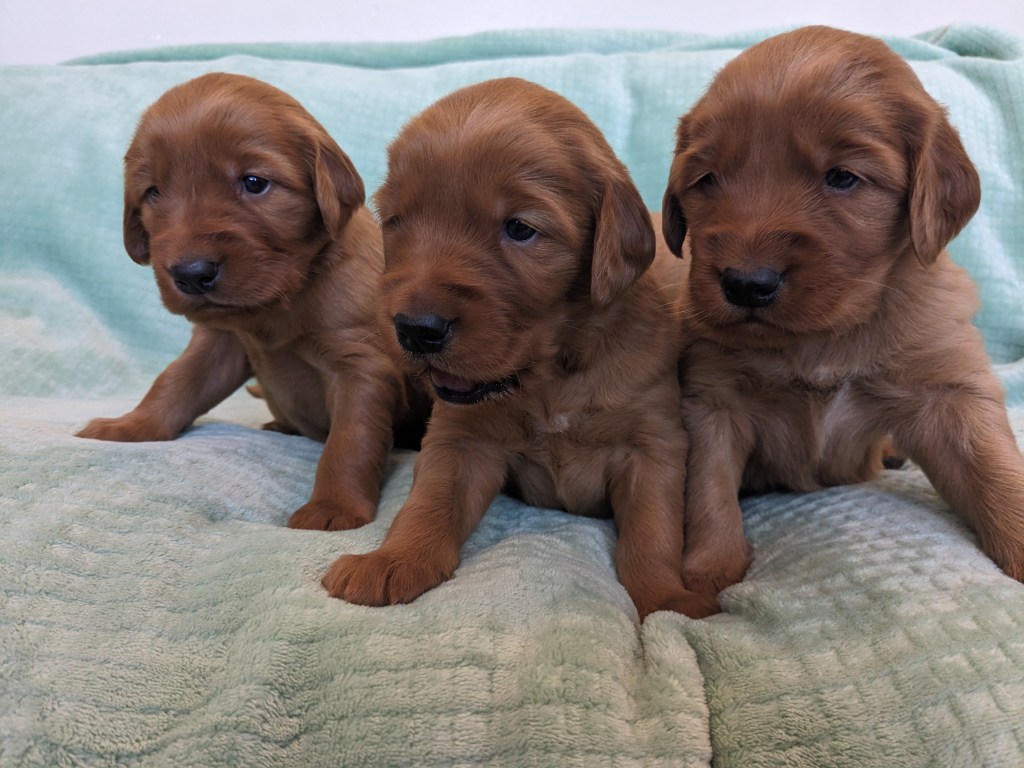 We are very excited to announce these new parents! A first litter for both, we have lots of confidence in their health and performance of their pups. Ronan is a flashy Irish setter and full brother to our proven mama, Sadie. Both have a low shedding gene! Pumpkin was a Nadia/Watson pup from two years ago that was too much like her mama to let go. She is the spitting image of Nadia and a sweetheart.