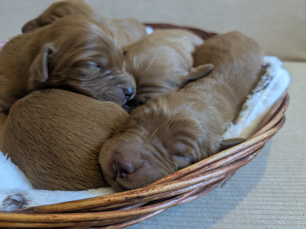 We are excited to announce eight stunning red Sadie puppies! We have loved our Sadie and Watson pups and seeing them grow into amazing dogs. This will be our last Sadie litter as she will be retiring to enjoy the rest of her life just being loved.