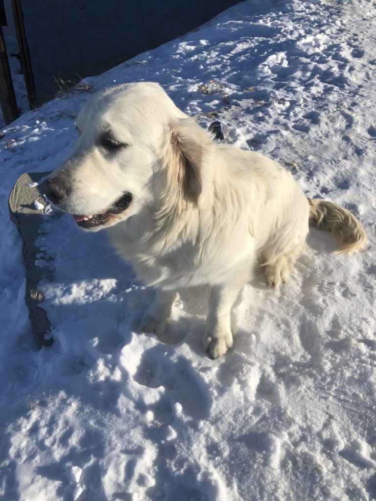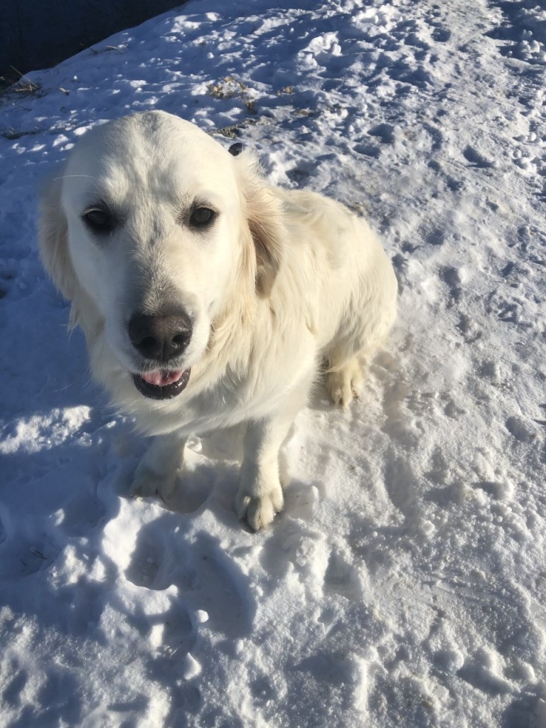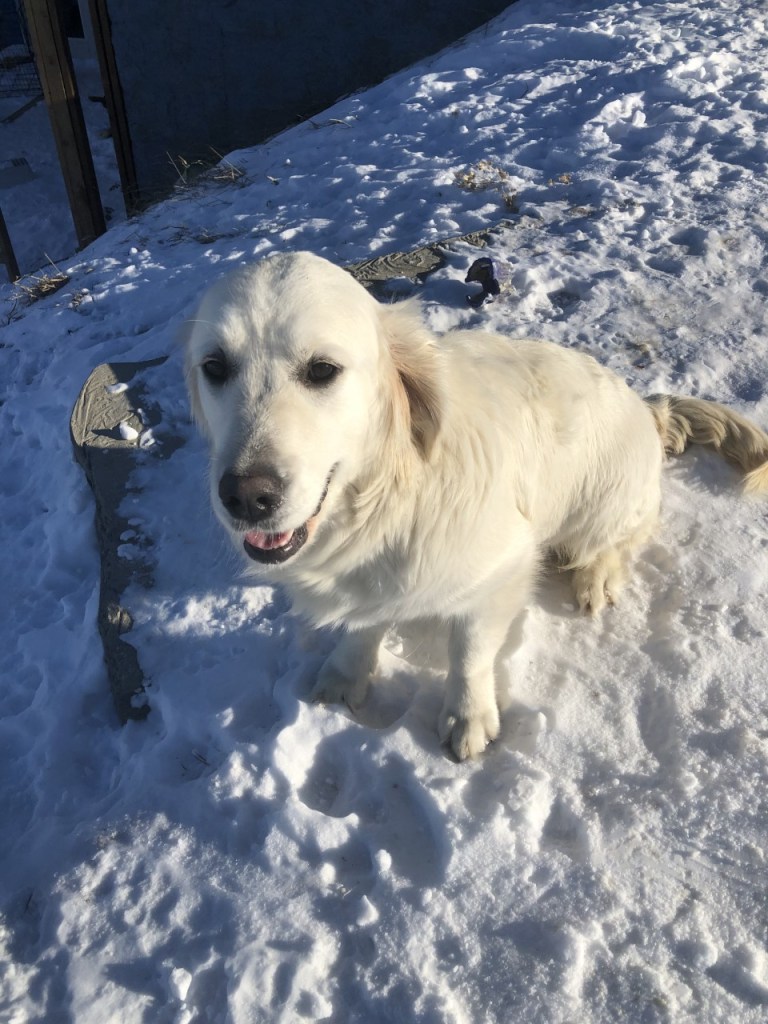 Luna: Lovely English Cream Golden Retriever with a gentle heart and laid back nature. Loves fetch, swimming, and tumbling in the snow. Great with kids and other animals.