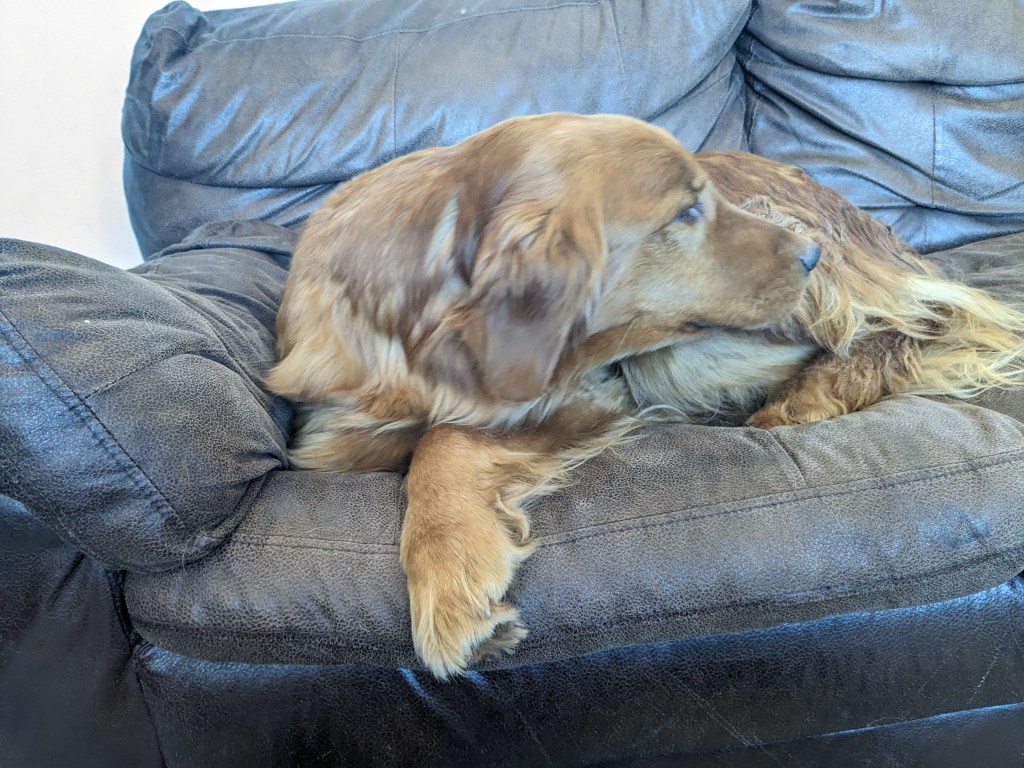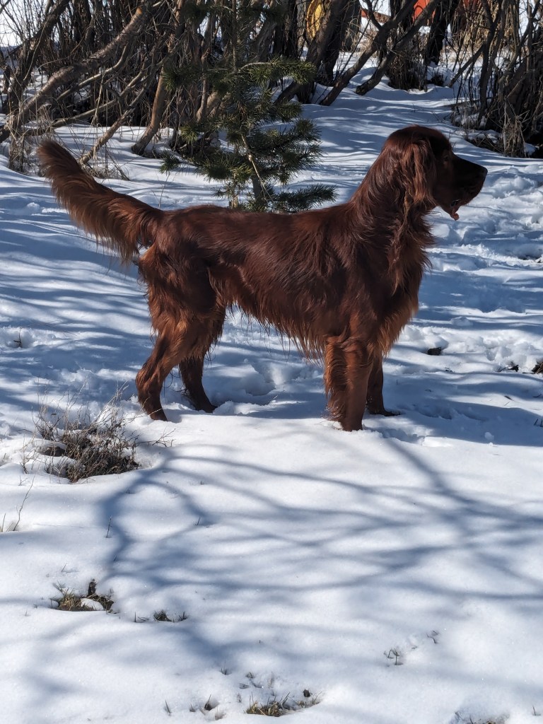 Ronan: Is a flashy sir with long, show style, coat… but also a low shedding gene! He is the full brother of Sadie and an affectionate pooch.